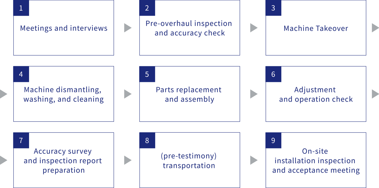 Repairs are carried out by service engineers with specialized knowledge. We handle everything from emergency troubleshooting and partial repairs such as replacing consumables to supporting the recovery of equipment.