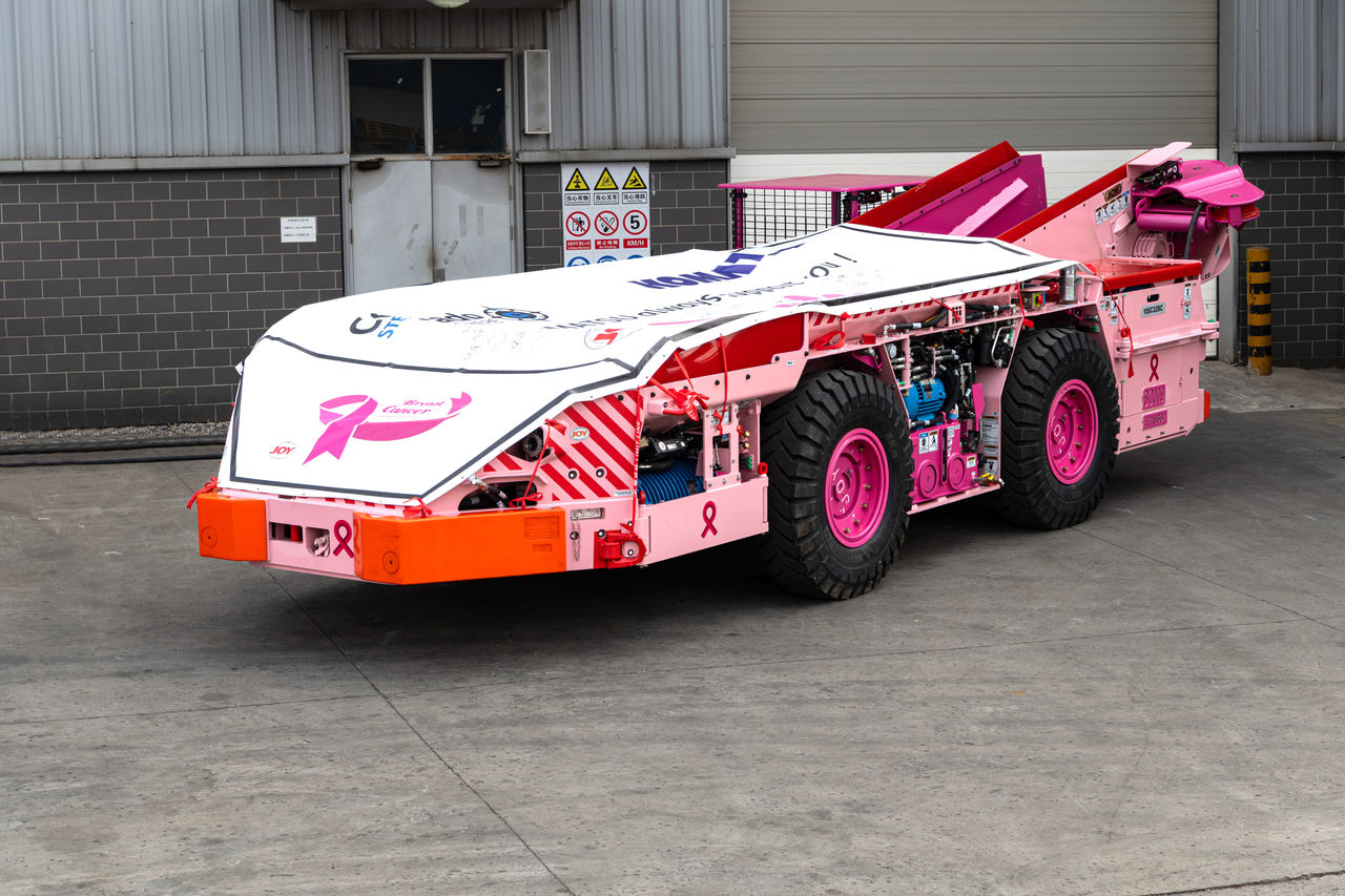 该项目合同共包含九台梭车,其中八台喷涂猛犸蓝色以提升公众对前列腺癌的认知,一台喷涂粉色以提高人们对乳腺癌的关注度。最后一台梭车于2025年3月初完工,并恰好在国际妇女节前夕交付。这批“公益专列”的交付,是久益"技术赋能生命"理念的生动实践。久益始终相信,企业的发展离不开社会的支持,这些井工梭车所承载的不仅仅是矿业开采,更是一份份对生命的关怀与敬畏。